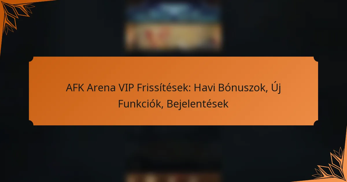 Az AFK Arena havi VIP bónuszok exkluzív jutalmak, amelyeket azok a játékosok kapnak, akik feliratkoznak a VIP programra, javítva ezzel a játékélményüket. Ezek a bónuszok általában különféle játékbeli erőforrásokat és előnyöket tartalmaznak, amelyek nem elérhetők a nem VIP játékosok számára.